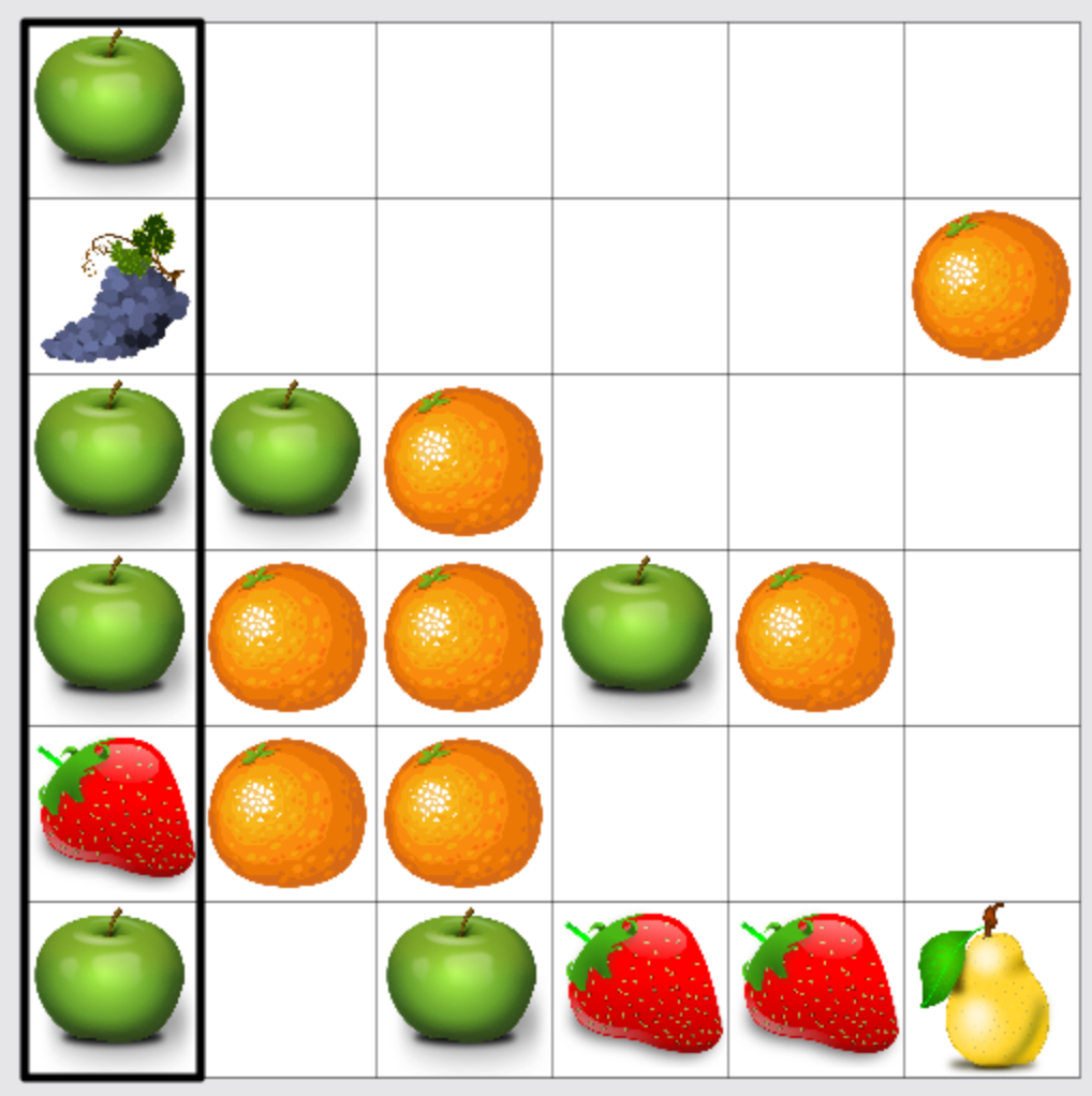 縦のラインのフルーツの最頻出値 : 6