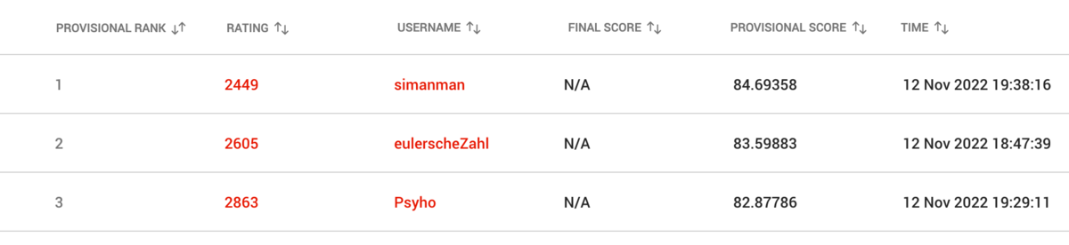 「暫定 2位! ただ、全員提出していないので(仮)だな」