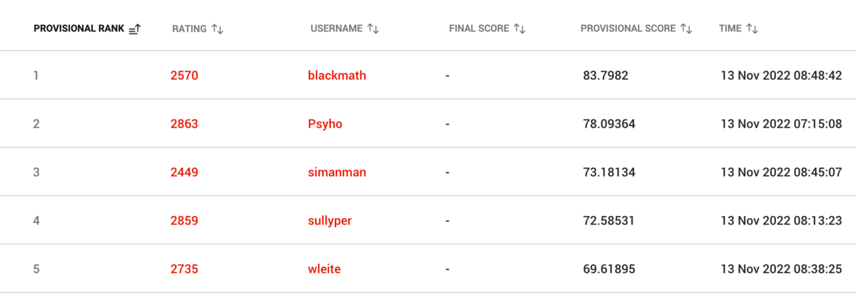 この後 6h ぐらい何も思いつかず順位が 8位ぐらいまで落ちる。