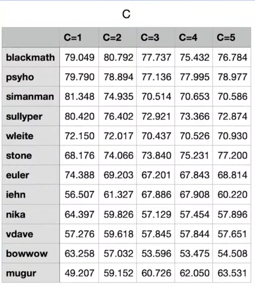 最頻出値は 2乗でスコアに影響しているのでなるべくこの値を大きくなるように評価を行いました。