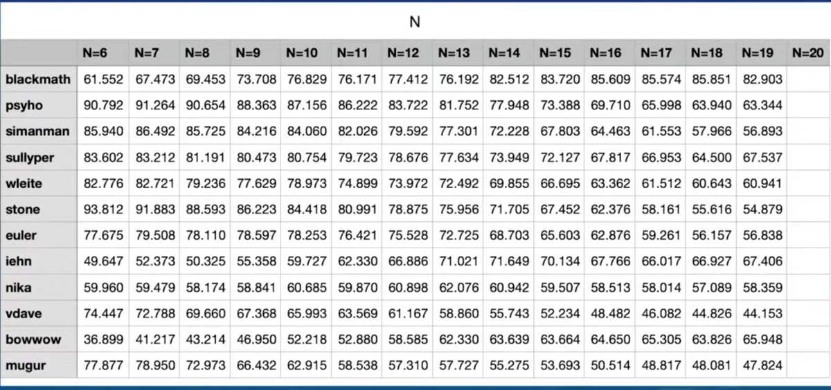 - グリッドサイズ : N (6 - 20)